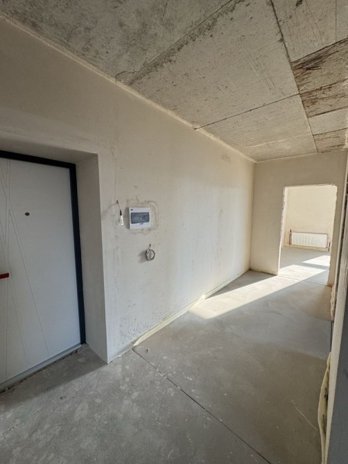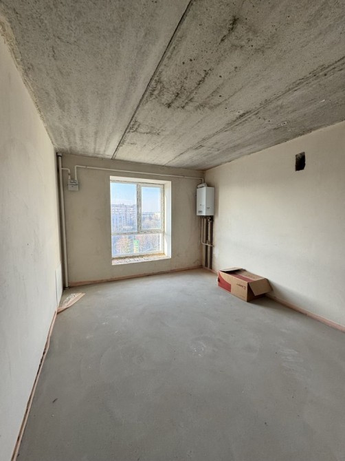 В квартирі виконані чорнові внутрішні роботи: гіпсова штукатурка стін, стяжка підлоги, тепла підлога, радіатори опалення, встановлений 2-контурний газовий котел, лічильники, до квартири заведена електрика 5 кВт, розведені сантехнічні виходи. Якісні вхідні двері та вікна.