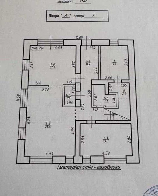 - Стіни зовнішні — з керамічного блоку, внутрішні — цегляні. Штукатурка — традиційна, на основі вапна, цементу та піску.