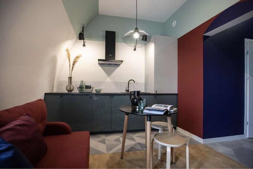 Сучасно мебльована квартира в апартаментному будинку з кухнею-студією, спальнею, коридором та ванною. Обладнана технікою: холодильник, морозильник, індукційна плита, духовка, пральна машина, телевізор!
