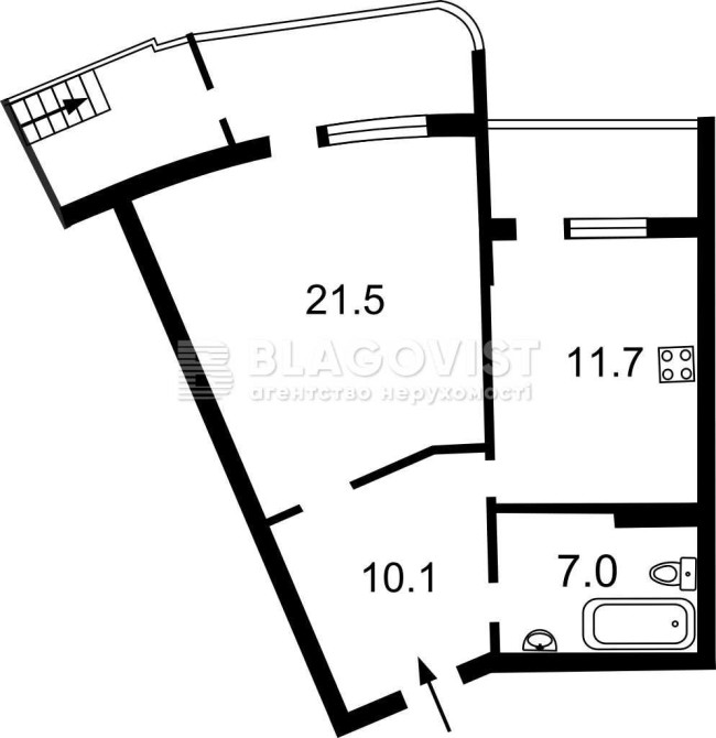 • Площадь кухни 11.7 м2