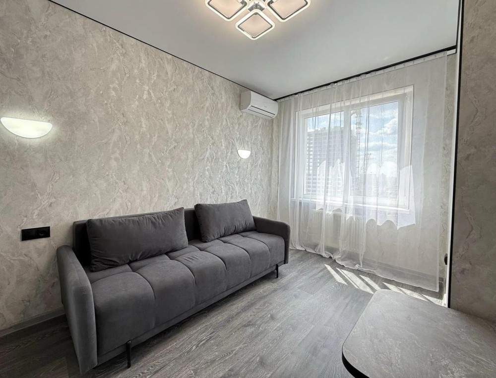 Продаж 1-к квартири вул. Кам'янська 128. м. Вирлиця 5 хв. Ремонт у світлих тонах, вікна підлоги, стелі 3 метри. Продаж з меблями та побутовою технікою. Гарний вид на Бажана проспект і озеро. Лічильник на тепло. Закрита територія. Поруч парк Партизанської Слави. 044 200 10 80
