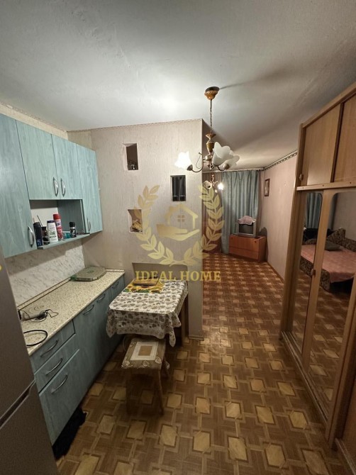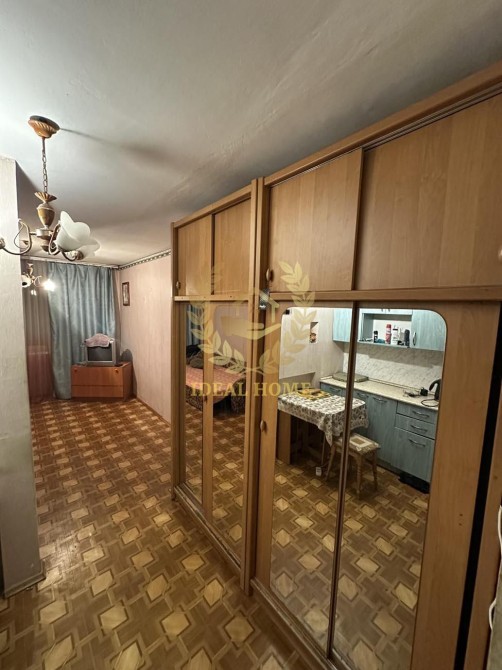 Простора кімната з продуманим зонуванням: спальна зона та відокремлена міні-кухня стінною перегородкою. В кімнаті залишається все, що на фото. Є місце для пральної машинки. Душ та туалет спільні на поверсі.