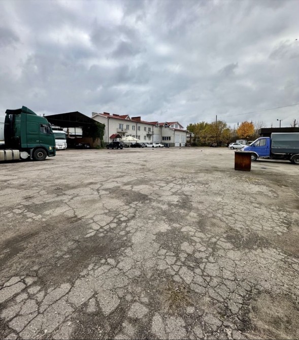 Територія огороджена та асфальтована, площа — 61 сотка. Частина ділянки (до 25 соток) підходить для стоянки авто або техніки чи відкритого складу.