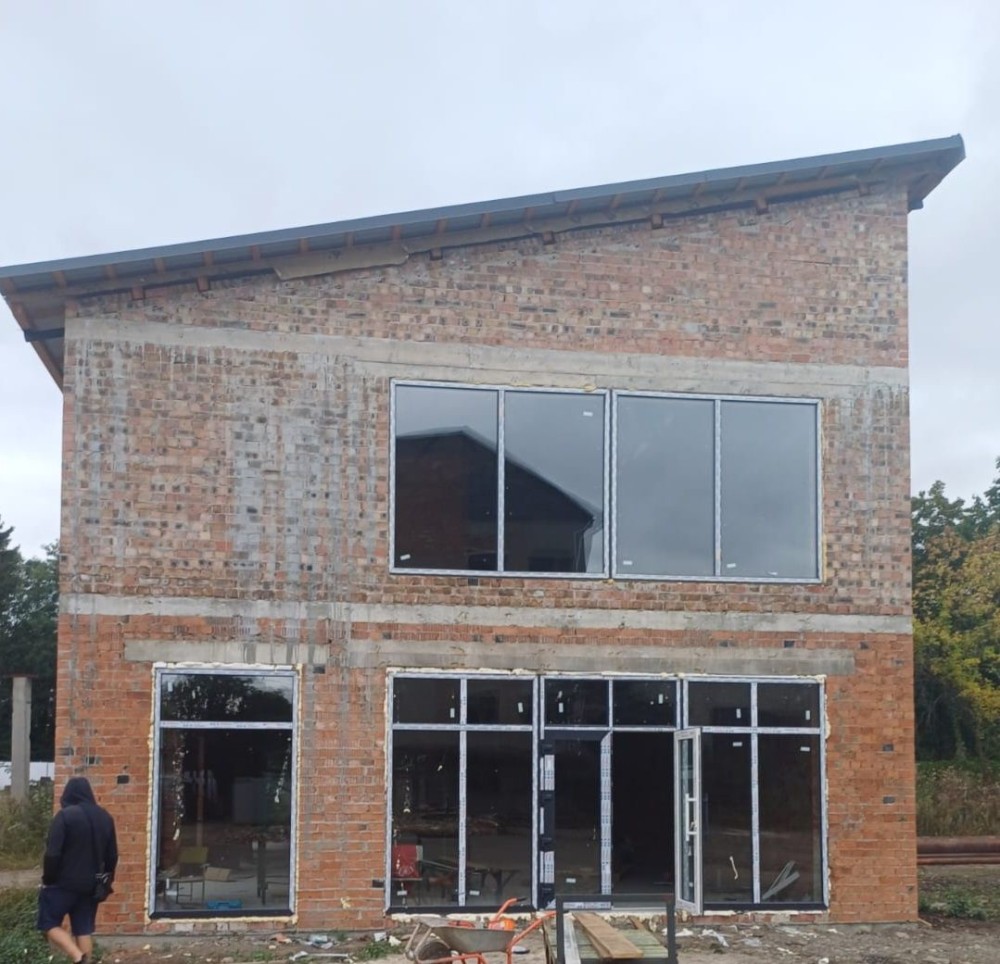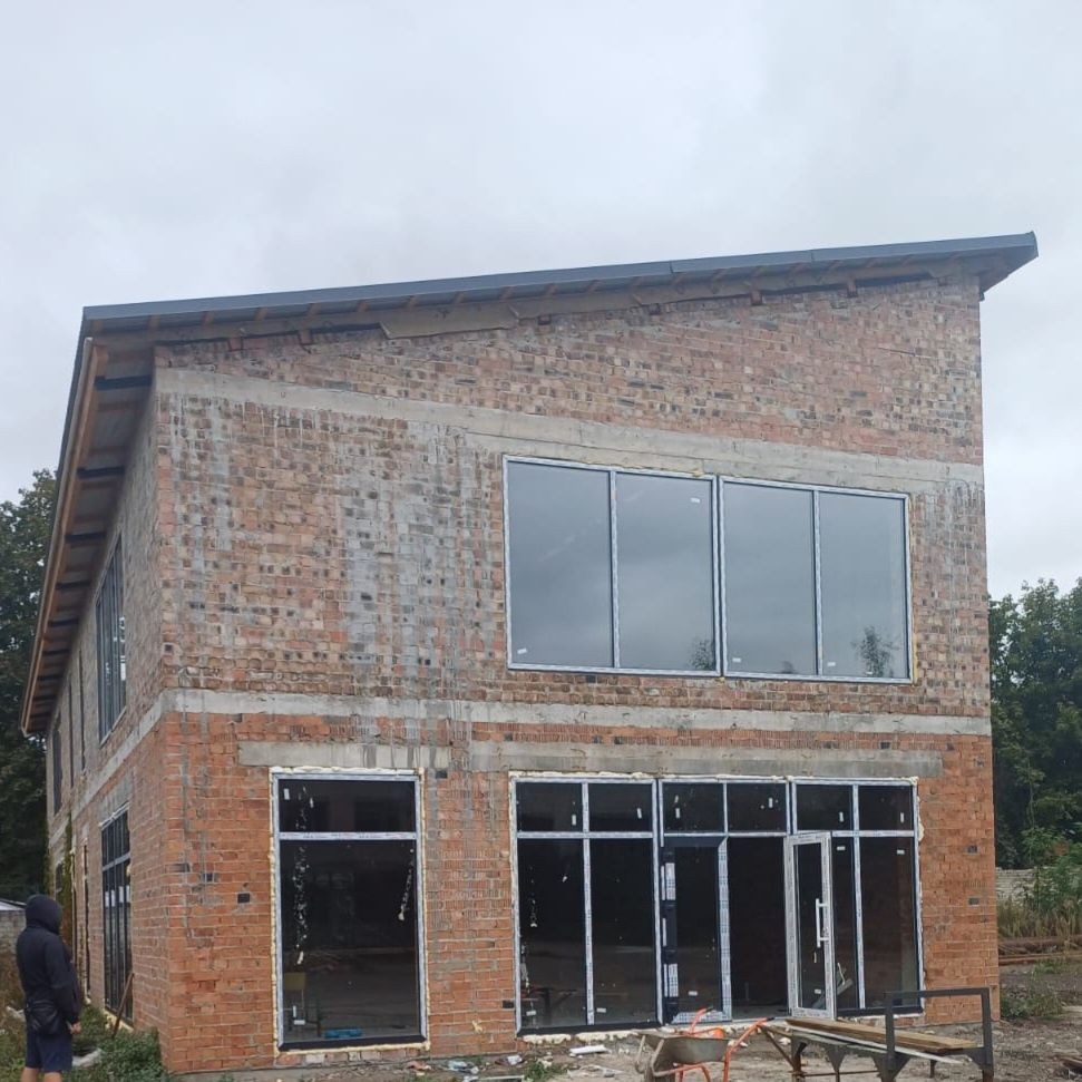 Встановлені великі панорамні вікна, підведено воду і каналізацію, заведено електроживлення потужністю до 100кВт.