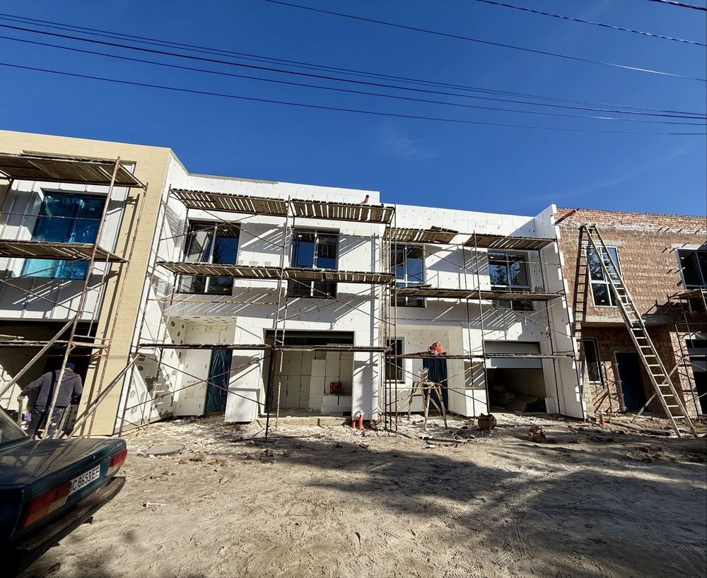 Котеджі на завершальному етапі будівництва — вже утеплюють фасади.
