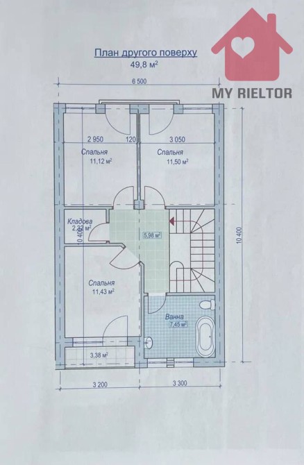 2-й поверх - 3 спальні, кладова, ванна кімната,