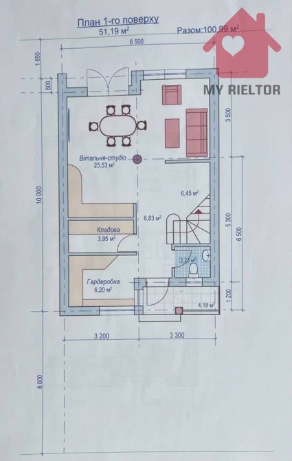 1-й поверх - кухня-вітальня, кладова, санвузол,