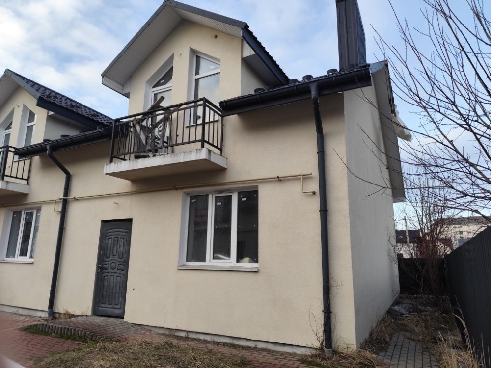 Продається новий індивідуальний житловий будинок котеджного типу загальною площею 131 м.кв. під чистове оздоблення, розташований в селі Крячки Фастівського (колишнього Васильківського) району Київської області на території нового житлового масиву із сучасною котеджною забудовою, що перебуває на відстані 20 км від станції метро «Теремки» міста Києва та за 1,5 км від міста Васильків. Житловий будинок складається з першого та мансардного поверхів. Загальна площа будинку із допоміжними спорудами становить 173,1 м.кв., з яких: а) площа будинку ‒ 131,0 м.кв., у тому числі житлова (основна) ‒ 94,1 м.кв. та допоміжна (підсобна) ‒ 39,6 м.кв.; б) площа тераси – 23,1 м.кв.; в) площа трьох балконів – 13,4 м.кв. (5,8 + 4,9 +2,7 м.кв.); площа ґанку – 5,6 м.кв. Котедж вміщує в собі 5 (п’ять) доволі просторих кімнат, 2 (два) санвузли (на кожному із поверхів), 1 (одне) технічне приміщення (котельня або бойлерна), 2 (два) коридори, 1 (одну) вітальню із виділеною еркером обідньою зоною, що поєднана з кухнею. Із вітальні є окремий вихід на велику терасу, з якої відкривається затишний вигляд на внутрішній двір. Кожна з трьох мансардних кімнат має окремий вихід на балкон. Над усією площею мансардного поверху розташоване містке горищне приміщення. Будинок приєднаний до електропостачання потужністю ‒ 12кВт (3 окремих фази). Має свердловину глибиною 55 метрів із фактичним дебітом (спроможною потужністю) ‒ 2,5 м.куб./год. та каналізацію септик з переливом на 11 м.куб. На усій площі першого (крім житлової кімнати) та у санвузлі мансардного поверхів встановлена система водяної теплої підлоги фірми «Rehau». По котеджу розведені: опалення, водопостачання і каналізація. В будинку передбачена можливість встановлення камінної топки, а також приєднання котеджу до газорозподільної мережі та всесвітньої мережі Інтернет. Індивідуальний житловий будинок розташований на земельній ділянці площею 0,075га з цільовим призначенням – (02.01) для будівництва і обслуговування житлового будинку, господарських будівель і споруд (присадибна ділянка). Під житловою забудовою перебуває 0,0115га земельної ділянки, решта 0,0635га займає просторий двір. Кадастровий номер земельної ділянки: 3221487004:03:006:0328. Земельна ділянка огороджена парканом із монолітного фундаменту, що опорядковане металевим штахетом із обох боків та металевим профілем з тильної та фасадної сторін. Заїзд у двір має відкатні ворота. На території двору (перед будинком) облаштоване загальне паркомісце на 2 (два) автомобіля, решта двору засіяне газонною травою. Котедж побудований з якісних матеріалів за проектом європейського архітектурного бюро. Так, фундамент, перекриття та міжповерхові сходи ‒ монолітні. Стіни будинку збудовані з газоблоку AEROC D500 (товщиною 300мм), що утеплений пінопластом 100мм. Внутрішні міжкімнатні перегородки виконані із цегли. Дах ‒ металочерепиця фірми «Ruukki», що утеплений мінераловатними плитами загальною товщиною 200мм. Вікна вироблені з профілю фірми «Rehau» серії EVRO 70. Фасад котеджу покритий акриловою штукатуркою. Будинок за усім периметром має вимощення шириною 0,9 метри, що облаштоване фігурними елементами мощення (ФЕМ). Зручне ергономічне планування будинку, а також наявність високих стель обох поверхів дає можливість відчувати себе вільно і затишно. Завдяки правильному утепленню зовнішніх стін будинку, у ньому прохолодно влітку та тепло вз