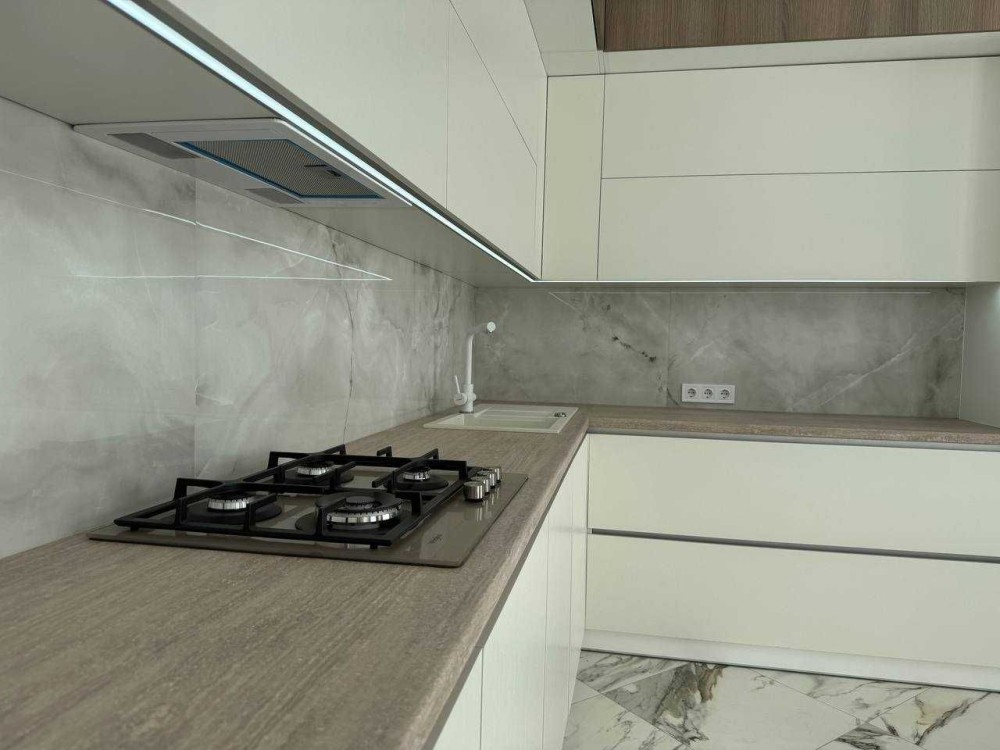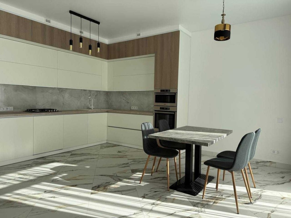В кухні вмонтована кухня з всією необхідною технікою: посудомийка, холодильник, духова піч, мікрохвильова піч, очистка води осмос.