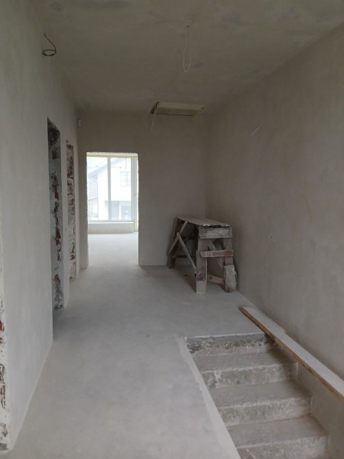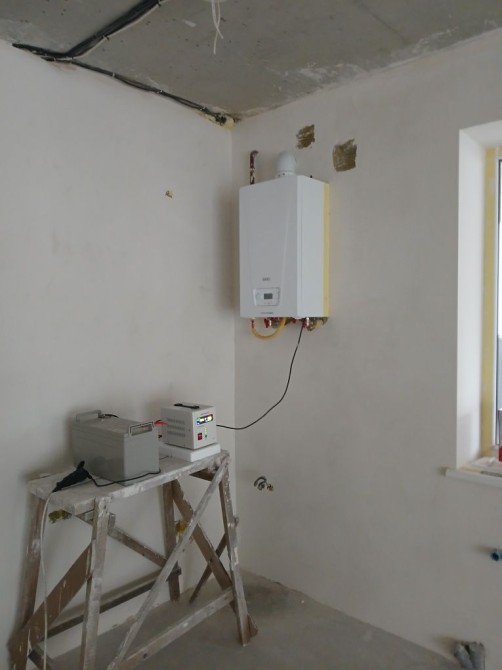 Зробленно опалення котел батареї розведення сантехніка розведення електрика гіпсокартонні стелі чистові стяжки стіни готові до покраски покладено брівку.