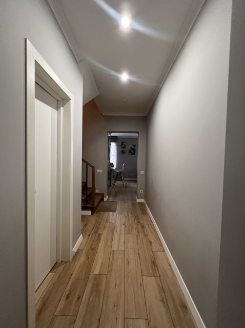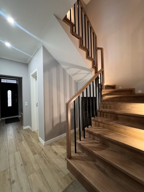 Загальна площа складає 135,9кв. На першому поверсі-коридор, гараж з виходом в будинок, санвузол та велика кухня-студія 28,7кв з виходом на терасу. На другому поверсі- три спальні кімнати, гардероб та господарський санвузол. Опалення-двохфункційний котел Buderus, є підігрів підлоги всюди де плитка(1-й поверх весь та санвузол на 2поверсі).
