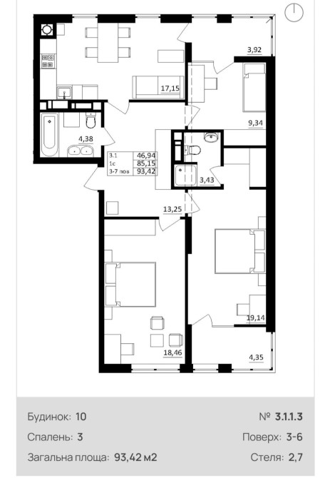 • Общая площадь 93.42 м2