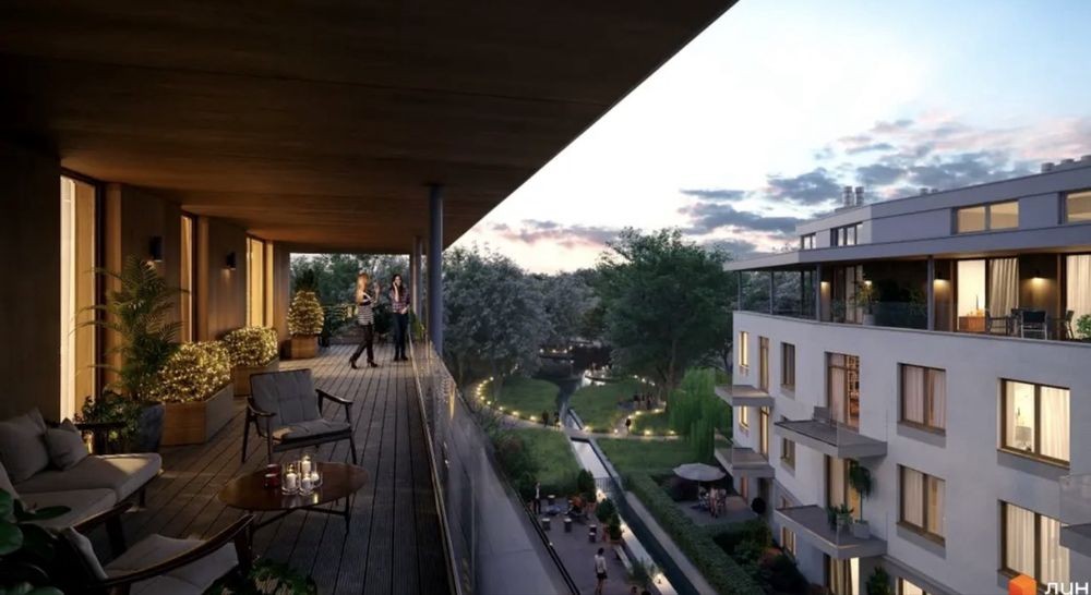 На території комплексу облаштовані алеї, зелені зони, дитячі майданчики, авторський ставок та річка, що створює атмосферу заміського відпочинку у межах міста.