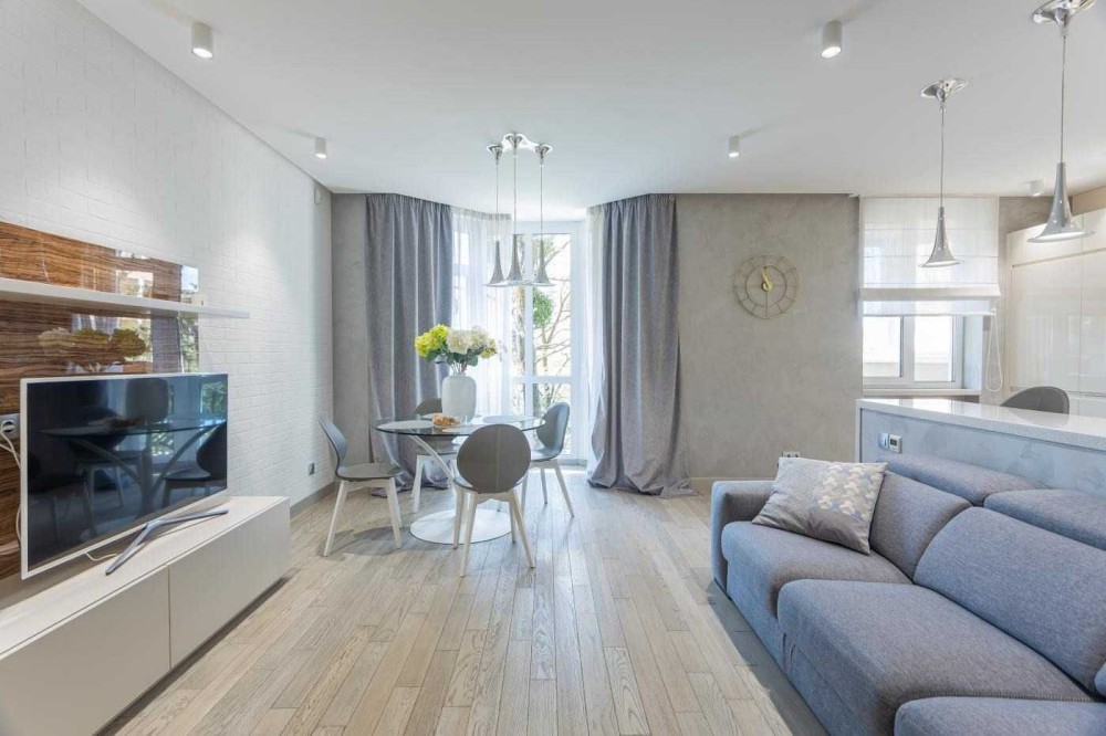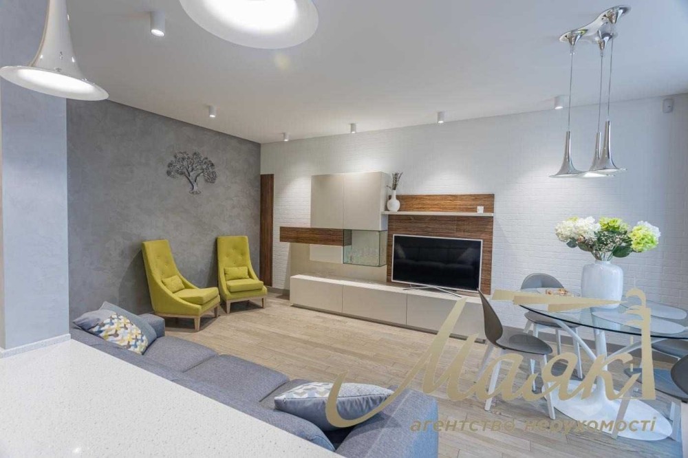- Кухня-вітальня з функціональним зонуванням.