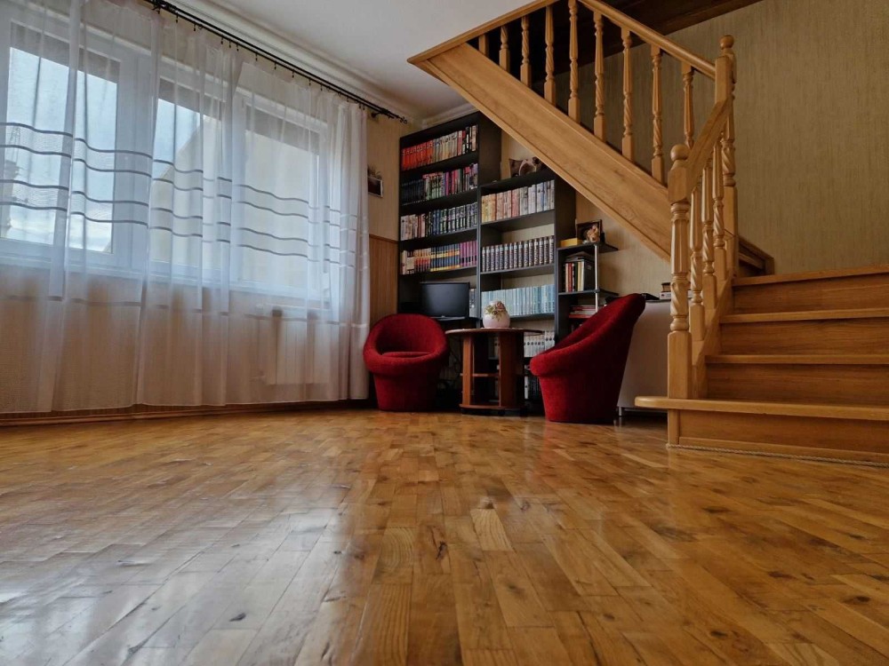 220 кв. м. Якісно утеплений фасад будинку два подвір"я, альтанка ,місце під авто, автоматичні ворота, відео-нагляд , встановлена сигналізація, ролети на всіх вікнах. По всьому будинку паркет, три санвузли, дві кухні,5 кімнат, 2 кондиціонера (тепло-холод),лічильник день-ніч, індивідуальне газове опалення, бойлер ,залишаються всі меблі, для зручності проведено два різних інтернет провайдера , У власності більше 3-х років!