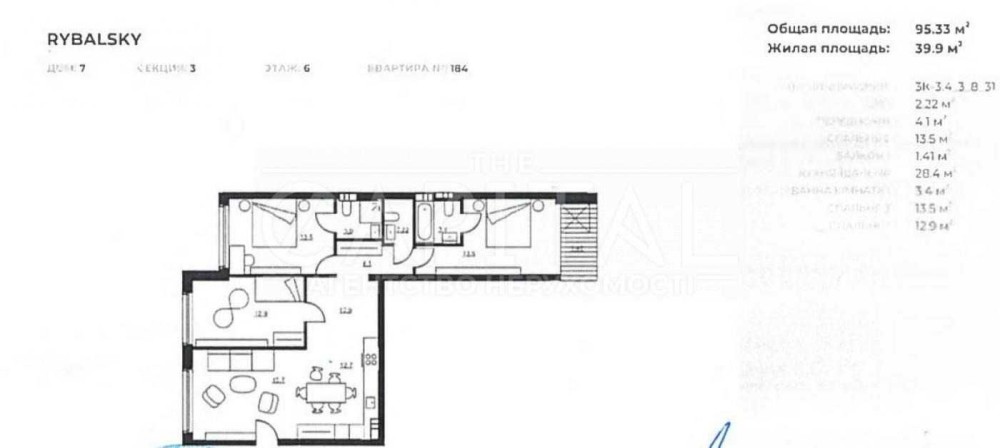 • Общая площадь 95.33 м2