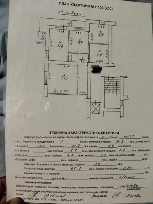 Квартира розташована на 7 поверсі 10-поверхового будинку. Загальна площа — 68,8 м². Зручне та продумане планування: дві ізольовані кімнати, простора кухня-студія, суміжний санвузол, великий коридор. Є велика лоджія з коміркою — додаткове місце для зберігання.