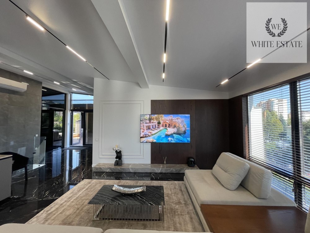 Тераса: накриття із підсвіткою та автоматично відкривається, встановлено джакузі, яке функціонує також і в зимку, зона відпочинку зі столом, в середині якого газовий огонь; аудіосистема, винний холодильник;