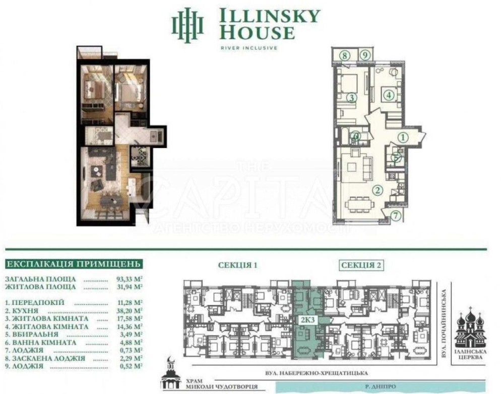 Продається двокімнатна квартира в ЖК «Іллінський Хаус», розташованому між вулицями Набережно-Хрещатицька, Волоська і Борисоглібська. Комплекс має зручні заїзди з обох вулиць, що забезпечує легкий доступ. Перший корпус виходить фасадом на Набережно-Хрещатицьку з красивим видом на Дніпро, а другий розташований у внутрішньому дворі.