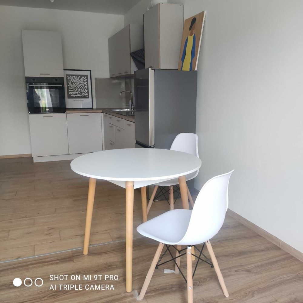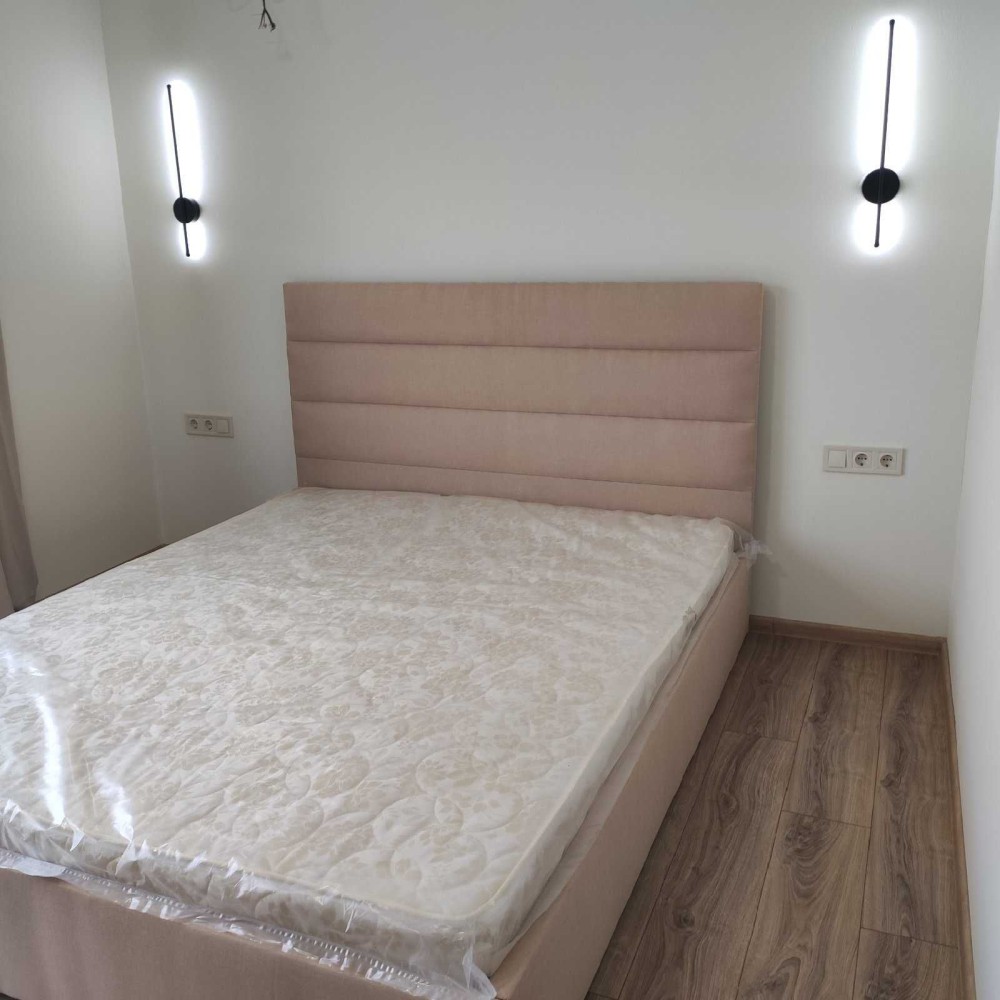 В квартирі нове двоспальне ліжко з гарний матрацом, вивід під кондиціонер, вбудована кухня з технікою (холодильник, варочна поверхня, духовий шкаф, витяжка).