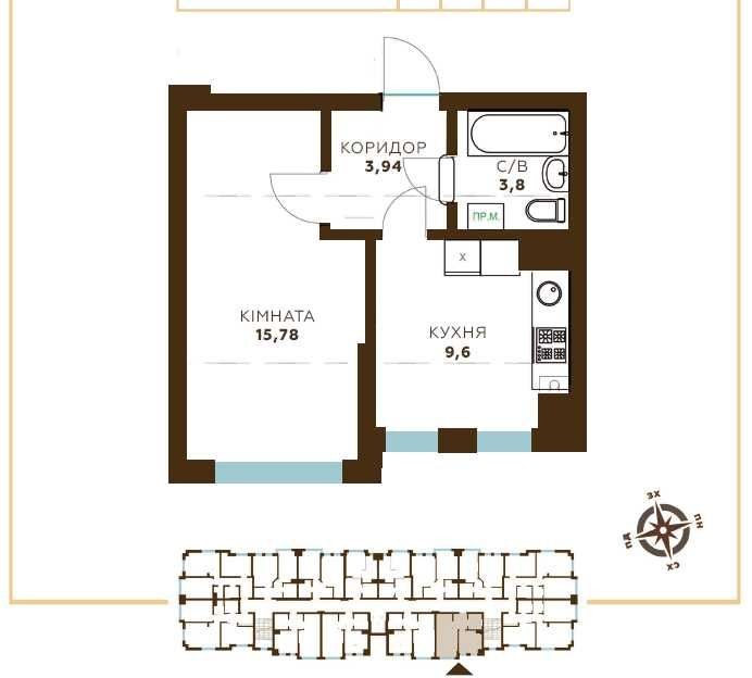 Продаж квартири 33м2 від забудовника ЖК"Добре місто" с.Крюківщина