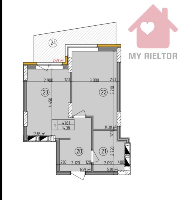 • Площадь кухни 12.85 м2