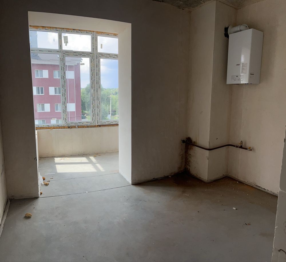 Площа квартири 36 м. На третьому поверсі монолітно - каркасного будинку. Стіни з газоблоку та цегли. На підлозі лазерна стяжка. Двокамерні склопакети WDS. В квартирі встановлений індивідуальний газовий котел.