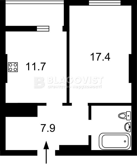1 кімнатна, 15-й поверх, площа: 47 метрів.