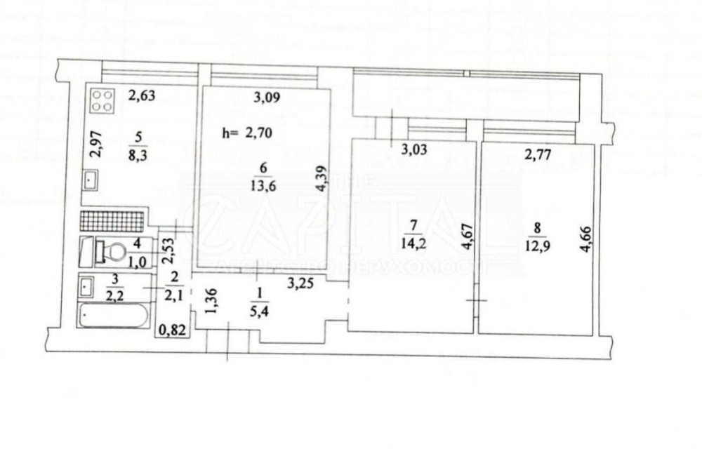 • Трехкомнатная