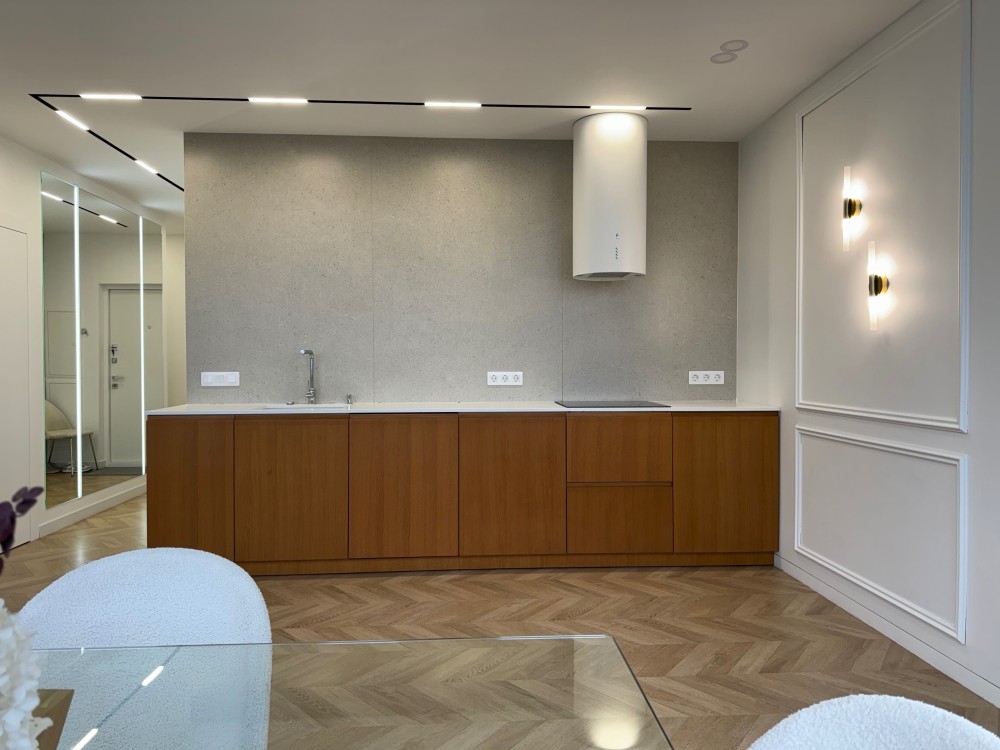 Ремонт виконано в 2023 році в спокійних благородних відтінках (латунь, кашемір) згідно з сучасними трендовими тенденціями - магнітні трекові вбудовані світильники; двері та плінтус прихованого монтажу; invisible сантехніка та змішувачі; king size bed в господарській спальні; шпонована кухня; стільниці з кварцевого каменю; грифельна стіна в дитячій (аналог шкільної дошки для малювання крейдою); вбудовані в стіну комунікації під Play Station та багато іншого.