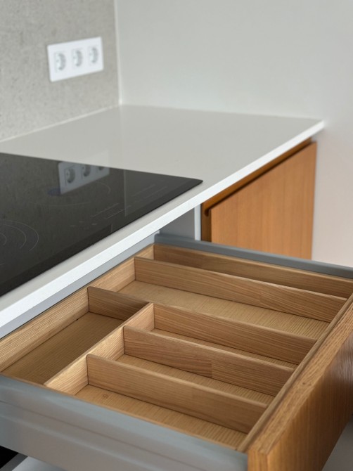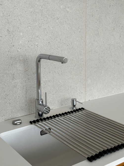 Матеріали та комплектуючі: техніка Electrolux, Samsung; сантехніка VilleroyBoch, Grohe; Franke; кварцовий ізраїльський камінь Caesarstone; фурнітура Blum; купольна витяжка Elica; дитячі дизайнерські меблі Cilek; жодних натяжних стель чи шпалер - квартира виконана під фарбування екологічною преміальною фарбою Oikos; бойлер; лічильники; кондиціонери; підігрів підлоги; квартира тепла (додатково встановлювались радіатори на опалення), декоративні 3D панелі та багато іншого.