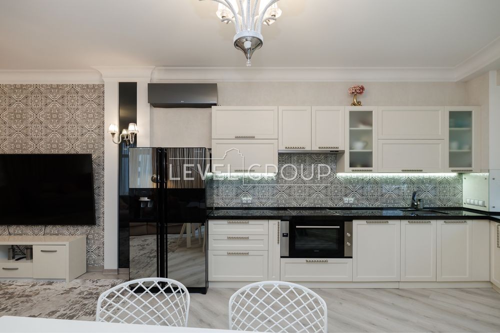Уявіть: ви заходите і одразу відчуваєте простір — кухня-вітальня з природним світлом, вдале зонування і витончений комфорт. Техніка Siemens - надійний помічник на кухні, лаконічна сантехніка VilleroyBoch протилежно люстрам з кришталевими вкрапленнями - акценти, які говорять: «тут цінують якість і дизайн».