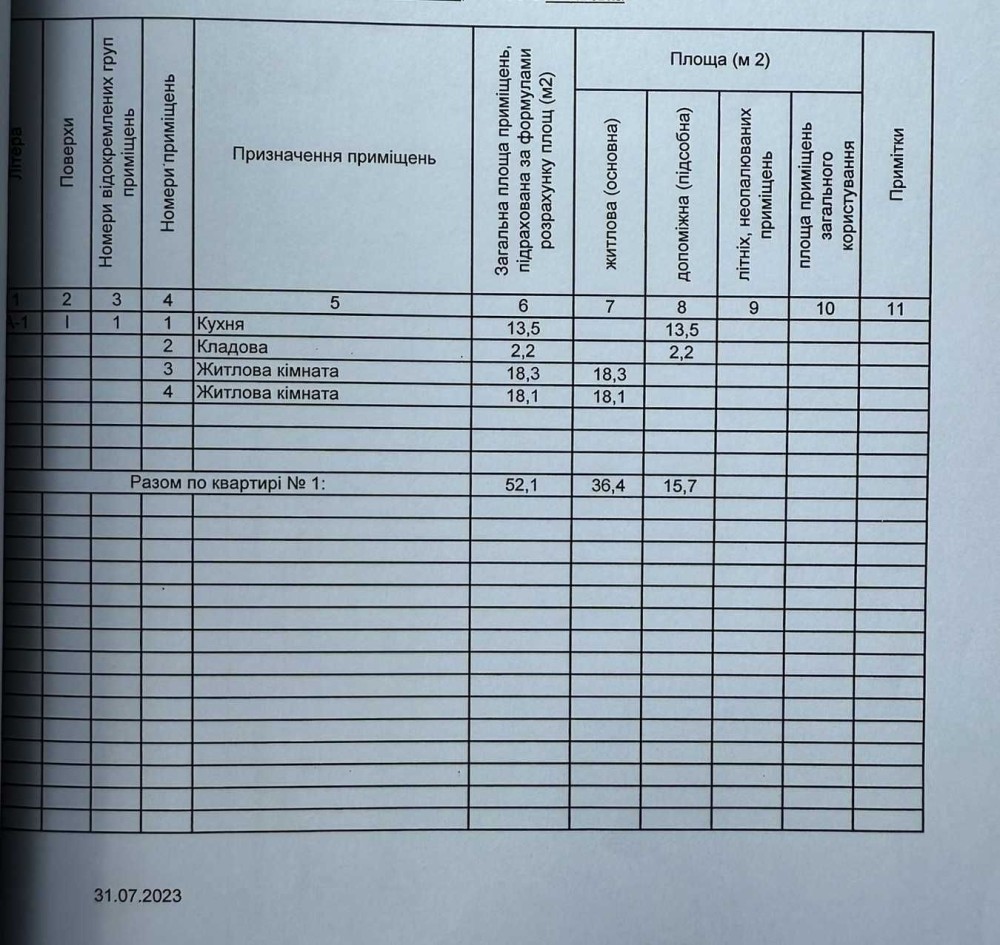 Загальна площа — 52,1 м²