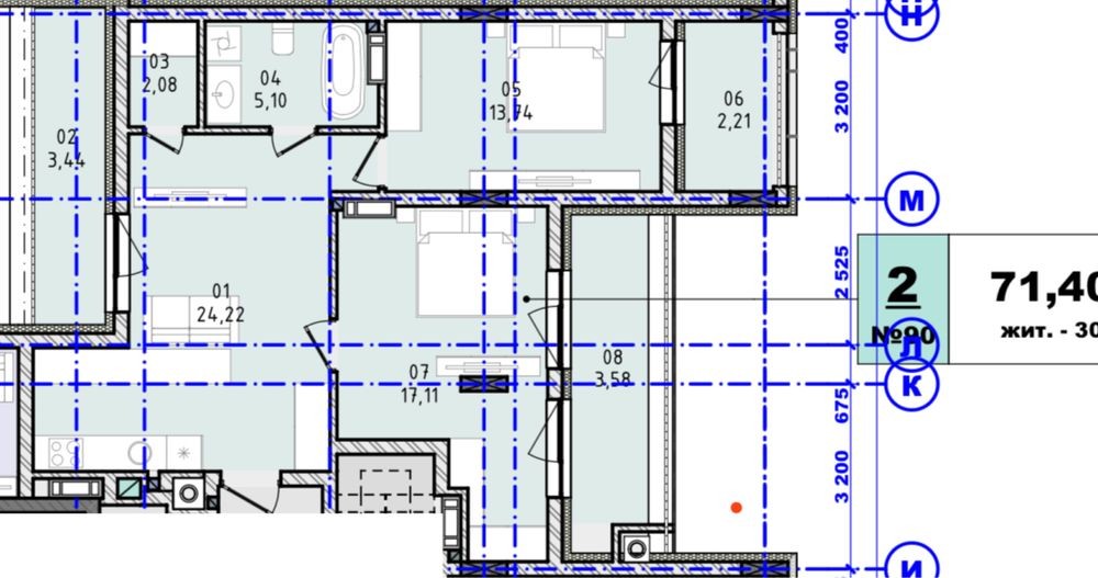 Площа 71,4м2