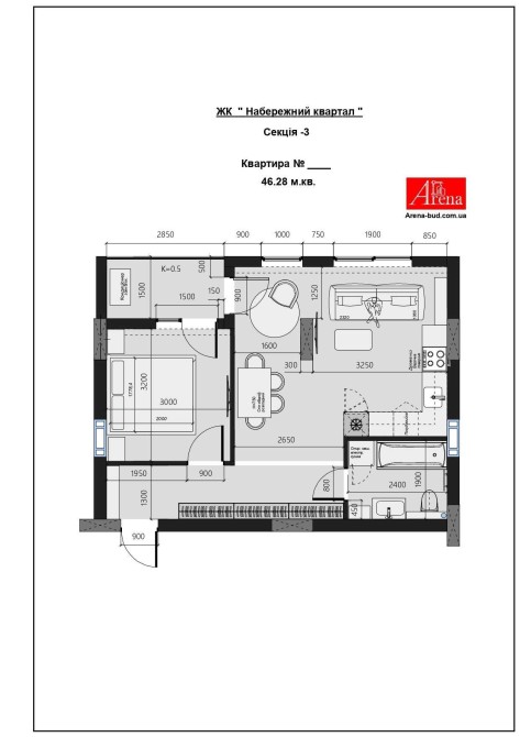 • Общая площадь 46 м2