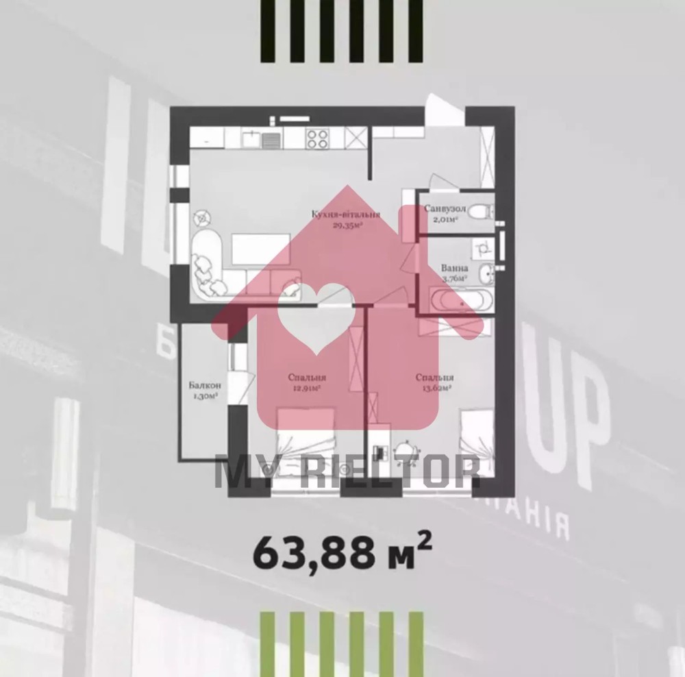 • Общая площадь 64 м2