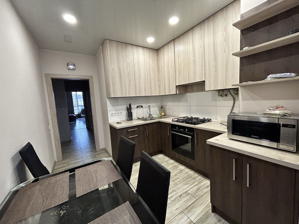 Квартира оснащена всією необхідною технікою та меблями.