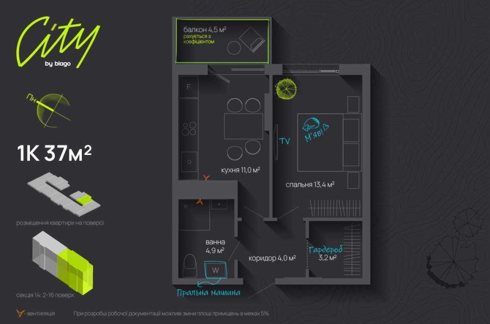 Пропонується сучасна 1-кімнатна квартира в престижному ЖК City by Blago — житловому комплексі нового покоління, розташованому в самому серці міста, поруч із мальовничим міським озером та парком ім. Тараса Шевченка.