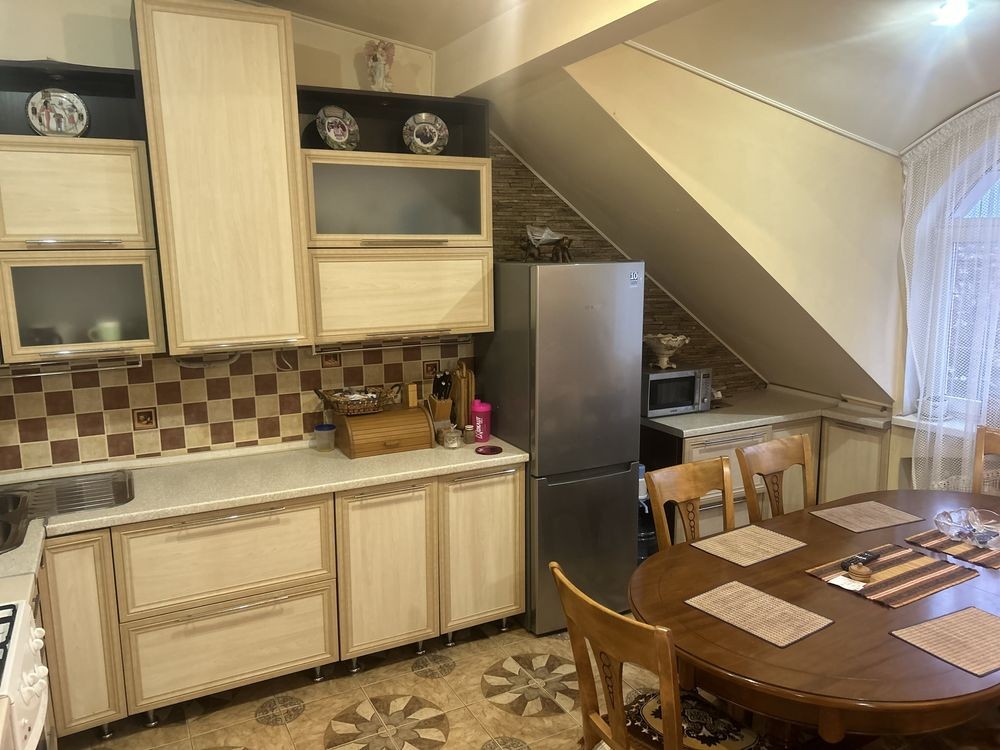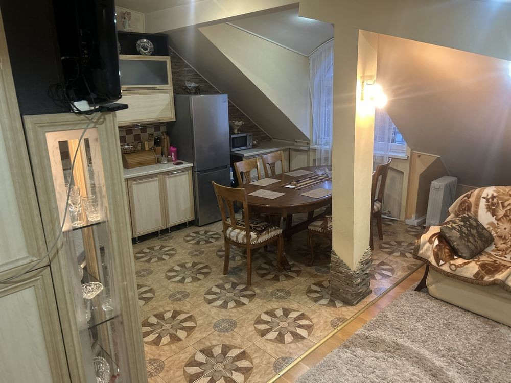 Продаж квартири площею 98 м.кв,кухня 19 м.кв,дві окремі кімнати,великий санвузол,другий поверх -відпочинкова зона,в квартирі встановлено автономне газове опалення,при продажі частково залишаються меблі