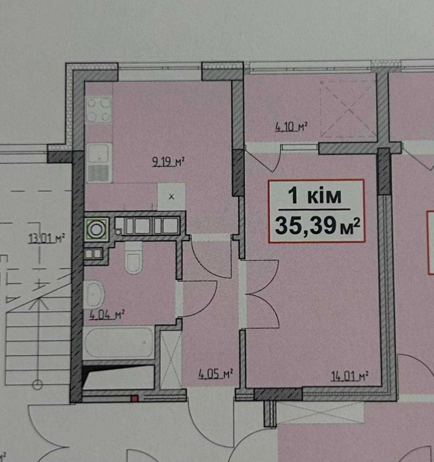 • Общая площадь 35.39 м2