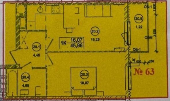 • Общая площадь 45.96 м2
