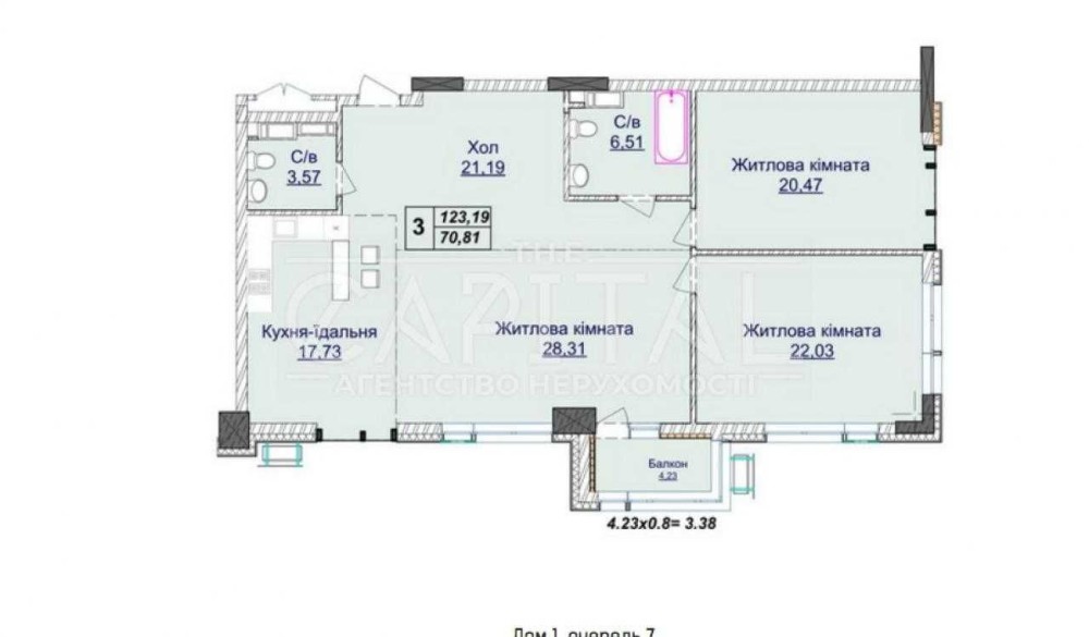 Квартира з просторим плануванням, великі кімнати, два санвузли. Панорамні вікна.