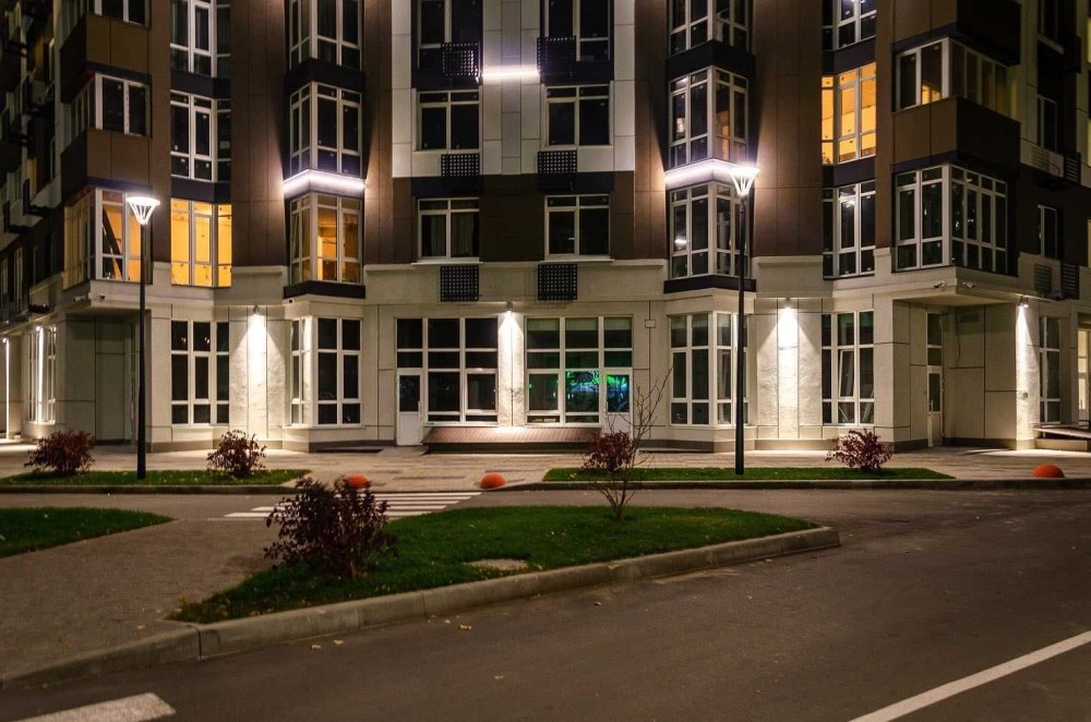Територія комплексу знаходиться під охороною, має великий внутрішній двір без машин - 2.5га, тільки для мешканців комплексу. Також, має гостьовий та підземний паркінг , який використовується і як укриття.