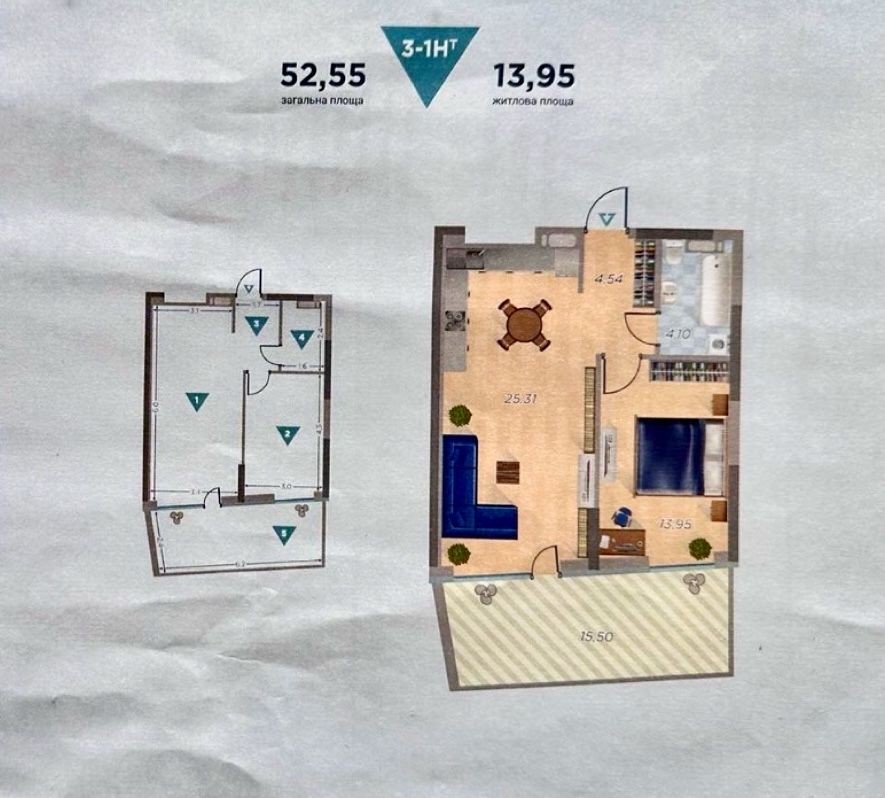 Особливість — простора тераса, ідеальна для зони відпочинку, кави вранці або міні-саду.