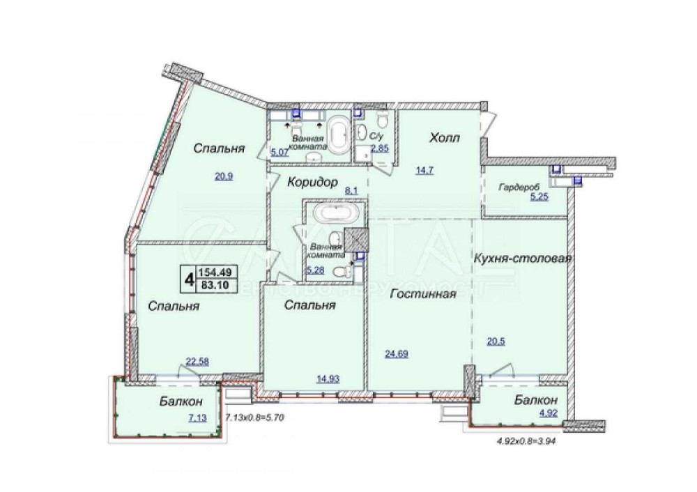 • Общая площадь 154.49 м2
