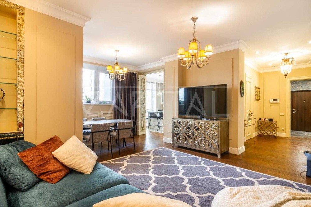 Комплекс, відомий своєю популярністю в класі «Бізнес +», розташований у престижному Печерському районі на вулиці Драгомирова Михайла, 12. Квартира має загальну площу 130 м і відзначається продуманим плануванням, що включає: