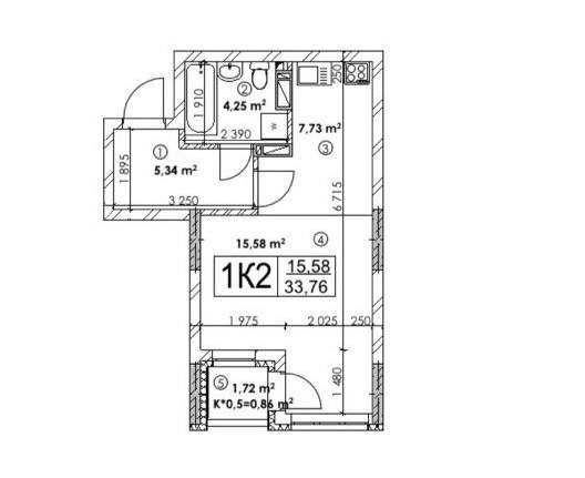 • Общая площадь 34 м2