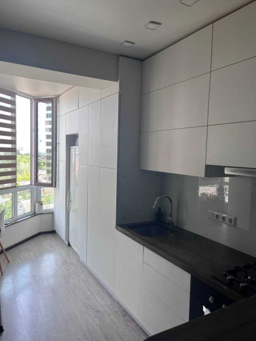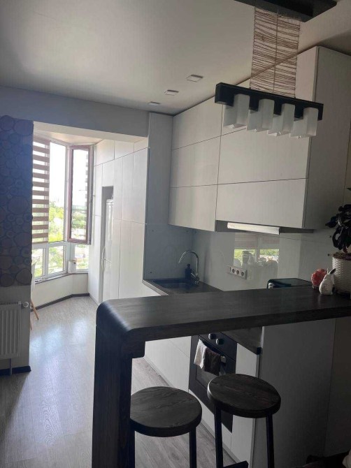 Новобудова ЖК Полісся. Загальна площа – 47 м2. Реалізовано дизайнерське рішення, завдяки якому, замість однокімнатної квартири - отримали повноцінну трьохкімнатну квартиру. Окрема кімната, спальня, вітальня від кухні відокремлена бар-стійкою. Кухня, 10м2, спланована згідно всіх ергономічних потреб. Санвузол спільний, гардеробна. Опалення – автономне, газовий котел. Вся інфраструктура в шаговій доступності. На перших поверхах магазини, пошта, стоматологія, поруч ринок. Спільна парковка, дитячий майданчик. Огороджена територія з відеоспостереженням. Працює охорона на території ЖК. Власне житло, проживаємо з серпня 2019 року. Робили ремонт для себе, використовували тільки якісні будівельні матеріали та сантехніку. Стеля – натяжна, в кімнатах ламінат, в ванній кімнаті - плитка та керамограніт. Стан квартири – ідеальний.