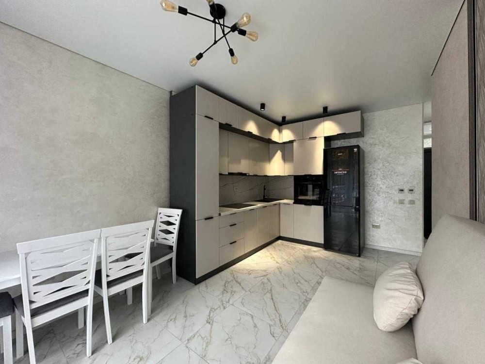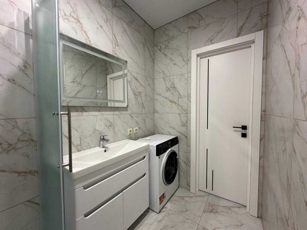 - наявні меблі та побутова техніка: кондиціонер, посудомийна машинка, холодильник, варильна поверхня, витяжка, духова шафа, пральна машинка, проведено оптоволокно.