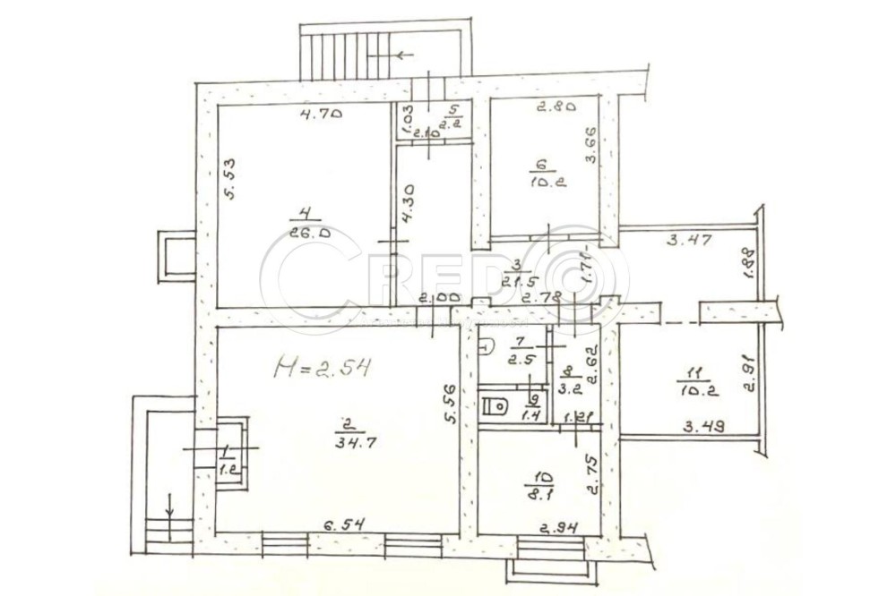- Висота стелі Н- 2.54м.